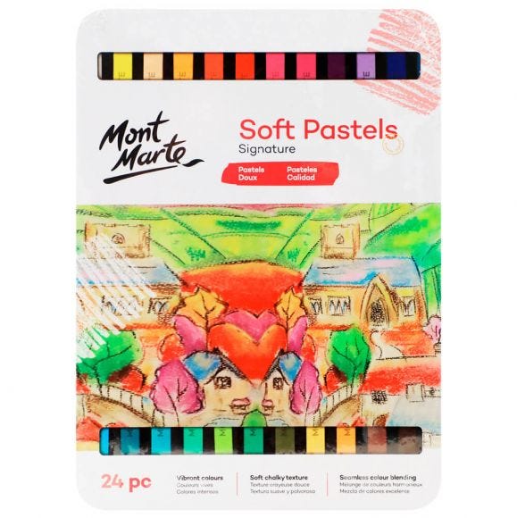 Create vibrant artworks and tonal effects using our Soft Pastels 24pc. This set comes with 24 bright colours that offer a soft chalky texture for smooth application and a tin box for storage.